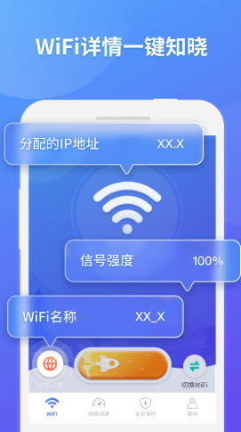 1,管理连接WiFi的状态,它具有一键WiFi测速、WiFi安全检测、WiFi网络安全检测的功能,免费体验。