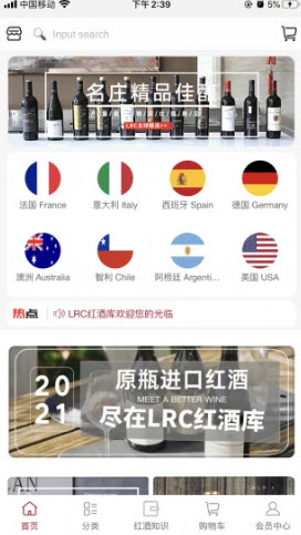 LRC红酒库app是一款以进口酒为主的购物平台,带给每一个爱酒的用户最好的体验,国内专业的零售平台,多种红酒的品牌在线上都是能够购买到的,百分之百的原装,购买高级会员的话,还能够享受更多的购酒服务,法国、意大利、西班牙、澳洲等国家,任何的红酒类型在线上均可一键购买到的。