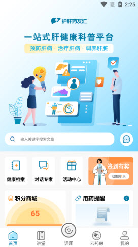 护肝药友汇app是款健康服务平台,里面拥有众多的护肝技巧,帮助需要养肝的用户全面进行护理,每天都有生活健康小技巧,这些知识可以进行收藏和关注的,有健康档案、知识科普、活动中心以及积分商城等,全面的医疗健康知识,通过里面的任务玩法,在线上能够兑换你想要的商品,专业人员提供配送。