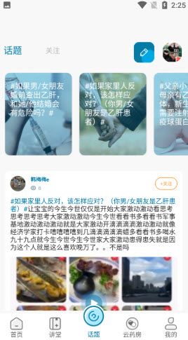 平台专为养肝所提供的平台,拥有很多相关的专题治疗方案,了解肝最喜爱以及最讨厌的地方,专家讲堂、肝病治疗方案、健康咨询以及养肝话题,线上还有云药房购物平台让你购买医药,拥有折扣优惠,专业配送,在里面还能够设置相关的服药时间,输入关键词,可快速的搜索你想要的文章进行关注。
