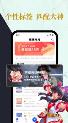 练练电竞app是一款电竞接单平台,拥有超多的电竞高手,王者荣耀、QQ飞车、英雄联盟、吃鸡等游戏,这些在线上都能够让你找到专业的代练来帮助自己上分,里面代练接单信息特别的详细,主玩的英雄、擅长的位置,你甚至还能够在线上找到陪玩妹子,新人用户在线上能够领取优惠券以及红包,助你上大分。