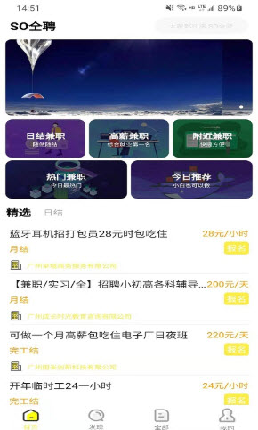1,各个岗位上的兼职,在线上都能够让你一键搜索出来,也可以根据类型来挑选自己想要的兼职。