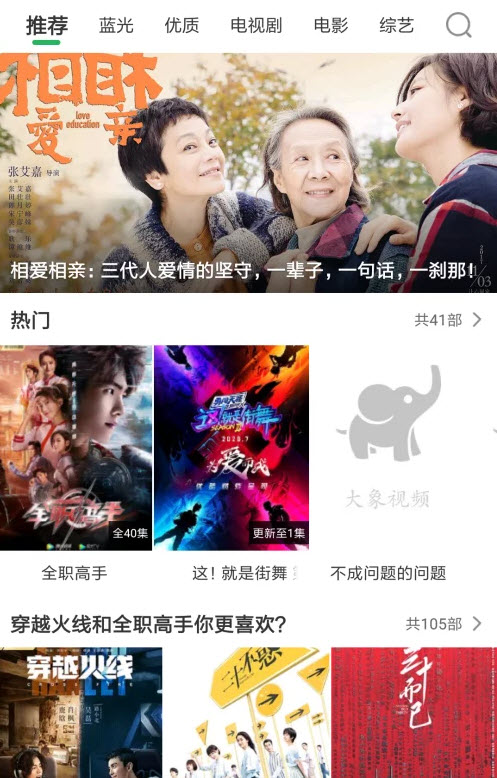 大象视频app平台中的影视都是通过高端技术为用户解析和搬运过来的,不用登录也能够让你享受里面的影视剧情的,好莱坞、内陆、港剧、动漫几十个类型皆可让你观看和体验到的,聚合类型的影视平台,去除了很多繁琐的程序,无任何的广告,想清爽的观看里面的每一部影视剧集的话,可通过本站下载。