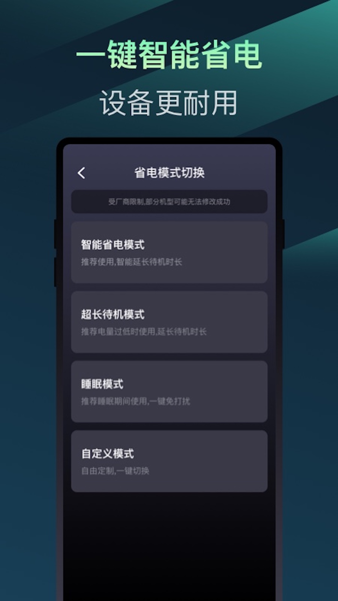 1、软件有多种不同的省电模式,经典的智能省电,还有超长待机、睡眠模式等等。