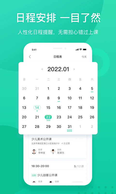 学习服务涵盖幼儿到高中,提供了强大的课程查询功能,线上直接报名,无需出门,一键就能搞定,课前提早做好准备,轻松制定复习计划,合理分配你的学习时间