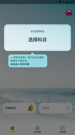 2、进入首页后,首页需要选择你要学习的科目,再点击“开始学习”进行学习,会有专门的辅导老师进行教学。