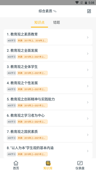 4、最后还可以通过“仪表盘”功能看到自己近期的学习记录以及掌握的知识点。