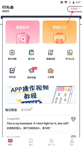 1、进入软件后,点击主页右上角的“未连接”。