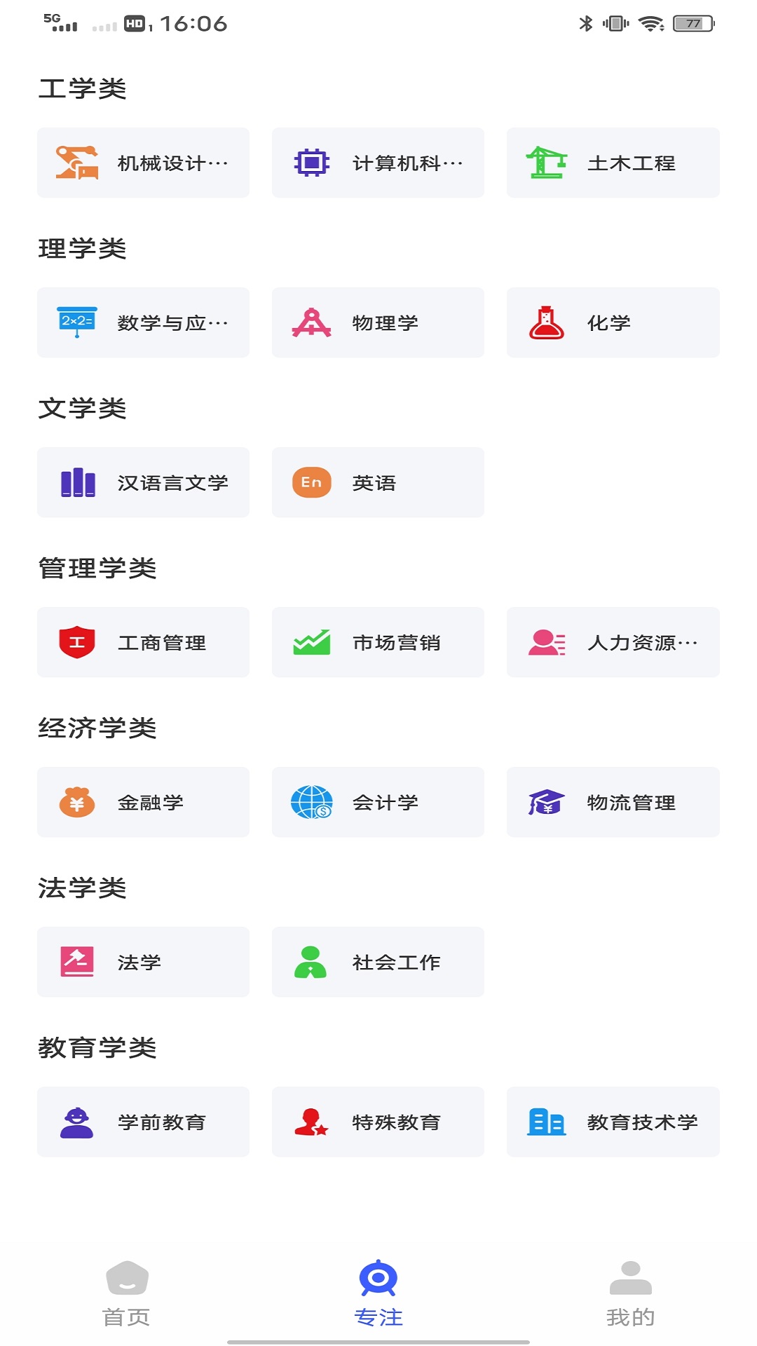 3、你可以在软件的专注选项中看到工程学、文学、理学、经济学等多个学科的知识性图书。