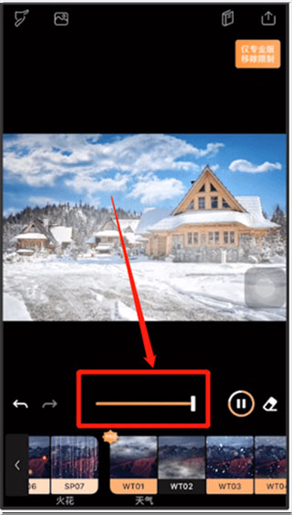 3、向左滑动,在天气分类下,选取第一个或者第二个效果。选择后,照片上方就会出现烟雾缭绕的效果。也可以调整上方的进度条,来增加烟雾的强度