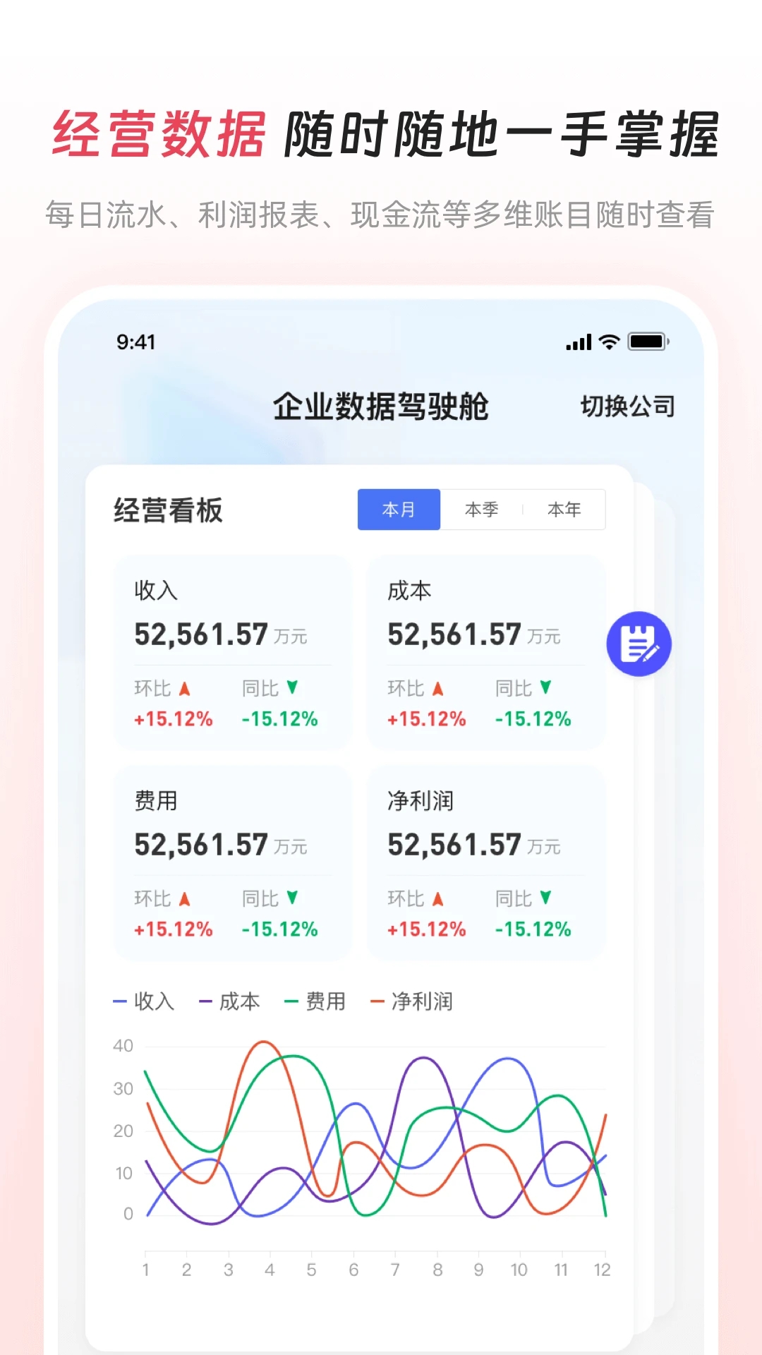 3、随心的进行公司管理,并查询本月以及年度的数据情况。