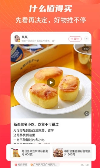 4.Get 年轻人的潮流生活方式!从简单易学的爆款美食食谱,到口碑爆棚的全网美食安利,更有新奇 Vlog 让你看到更多好生活。