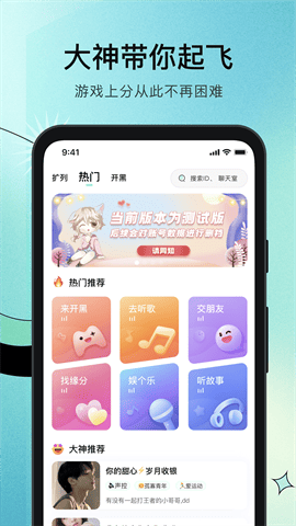 年轻人都在用的语聊交友工具,提供游戏连麦、队友匹配玩伴组队、语音交流、直播娱乐、电子竞技等多种游戏娱乐互动场景,上乐哇语音,寻找你想要的声音!