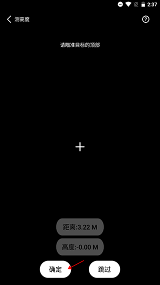3、把十字准星的中心对准待测物体的顶部,点击“确定”,测量结果将自动显示。