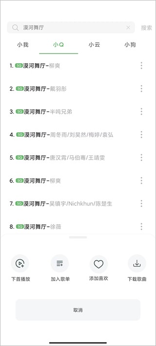 6、找到喜欢的歌曲,点击右侧的三个点按钮,即可看到下载歌曲按钮;