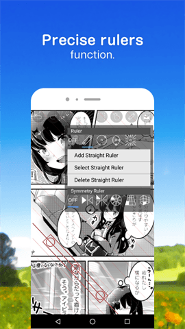 ibis Paint X 是一个流行和多功能的绘图应用程序下载超过 1亿次, 作为一个系列, 超过2,500材料, 超过800种字体, 它提供381画笔, 71个过滤器, 46个屏幕, 27 混合模式, 记录绘图过程, 笔画稳定功能、各种标尺特征, 如径向线标尺或对称标尺, 以及裁剪遮罩特征。