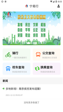 免费下载 大小:94.5M 下载:1次 宁易行app V1.5.4 最新版 支 持:安卓 分 类:安卓软件 大 小:94.5M 版本号:v1.5.4 最新版 发 布:2022-09-23 13:49:29 手机扫码免费下载 #宁易行app V1.5.4 最新版简介 宁易行app是南京江宁公共交通信息科技有限公司倾情推出,软件拥有扫码骑行,公交查询,公交换乘等等功能服务,可以帮助用户更智慧便捷江宁出行。宁易行app介绍:宁易行"是一款帮助市民简单出行,便利生活的APP。宁易行app功能:*扫码骑行手机扫码/刷卡片,即刻开启骑行;在线支付更加省时。*公交查询实时查询江宁区内公交线路、公交站点以及实时到站信息。*公交换乘可为用户提供南京市内公交、轨道交通换乘方案。*校车查询实时查询江宁区内指定学生校车实时轨迹。*客服热线客户服务热线:025-962013更新日志:更新: #宁易行app V1.5.4 最新版截图