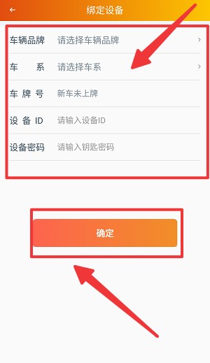 3、填写设备信息和车辆信息,点击“确定”,等待APP与设备成功建立连接。