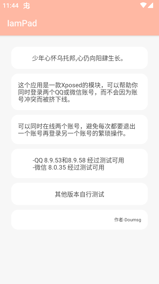 3、QQ 8.9.53和8.9.58经过测试可用,微信8.0.35经过测试可用。
