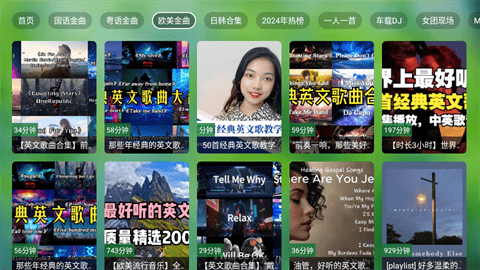 2、成功进入首页之后,我们可以看到丰富的国语金曲,粤语金曲,欧美金曲音乐资源。