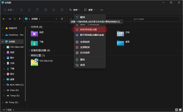接着你在电脑上可以用浏览器访问 FTP 地址或者映射网络驱动器的方式来访问,打开资源管理器 - 工具栏 - 映射一个网络位置。