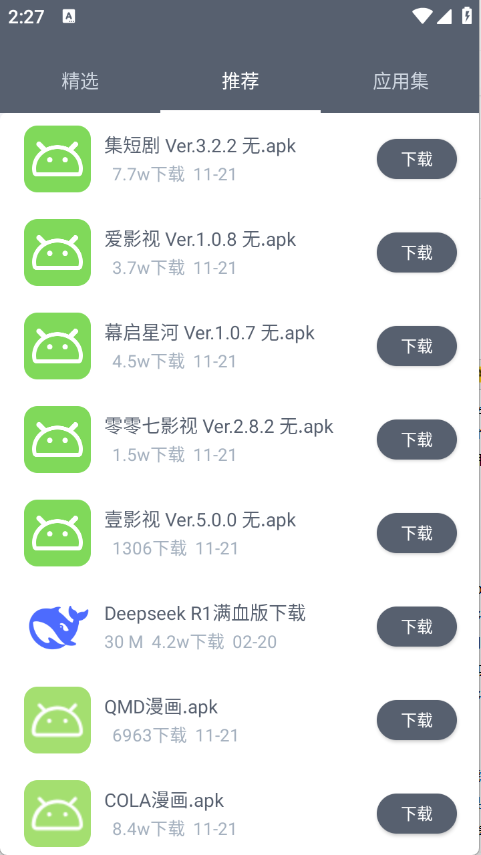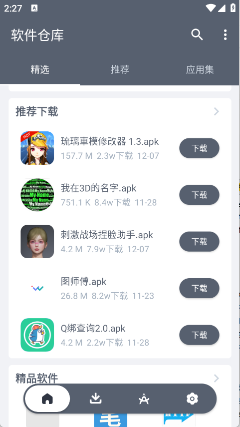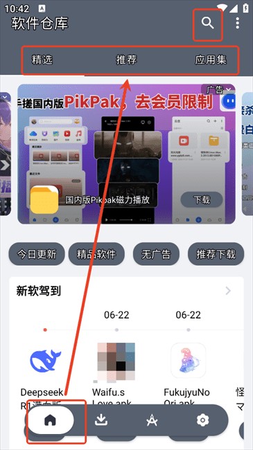 1.你可以在主页【精选】【推荐】【应用集】或是快捷搜索的方式来找到需要的应用或游戏