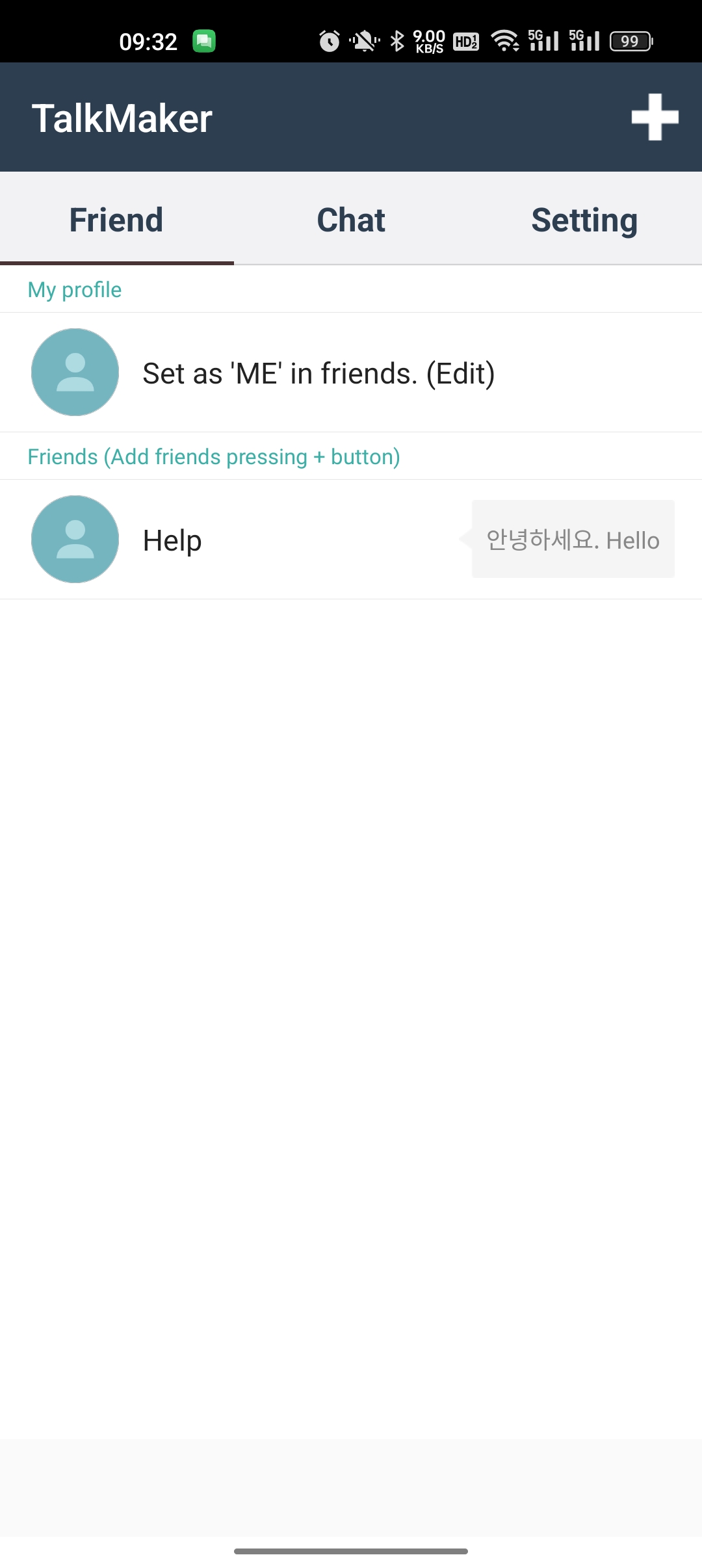 2.按+按钮创建您要与之交谈的人的列表。您可以自由邀请并与该列表聊天。您也可以上传个人资料图片。(您也可以将其他朋友加入您的个人资料。)