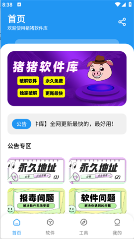 2、点击打开猪猪软件库,进入软件首页。