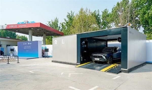 2、去换电站进行换电蔚来是目前唯一一个支持换电的品牌,我们可以在蔚来车机上找到最近的换电站,随后把车辆驶入换电站内。此时,换电站会把车辆举升起来,随后把旧电池自动拆卸下来,换上电量80%以上的新电池,整个过程需要10分钟左右。蔚来换电站的数量目前还不多,主要集中在一线城市,二三线城市就可能无法使用这个功能了。