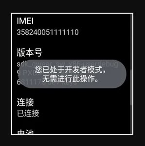 连续点击版本号,直到看到“您正处于开发者模式”或如下提示,如果开启失败可以查找搜索引擎或反馈,搜索方式为您的手表品牌、型号+ADB调试开启方式