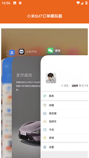 小米SU7订单模拟器是一款专门为用户轻松打造的汽车订单截图类的软件,在这款小米SU7订单模拟器app中,你能够在这里模拟生成小米su7汽车的购买订单和支付订单,因为小米汽车su7是不退定金的,这款软件可以让你在装逼的同时不会影响自己的金钱,还能填写你想要的微信信息,微信名和微信图片。