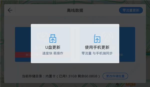 2:将解压后的数据存放于U盘根目录,进入【离线数据】页面,点击零流量更新,选择【U盘更新】。