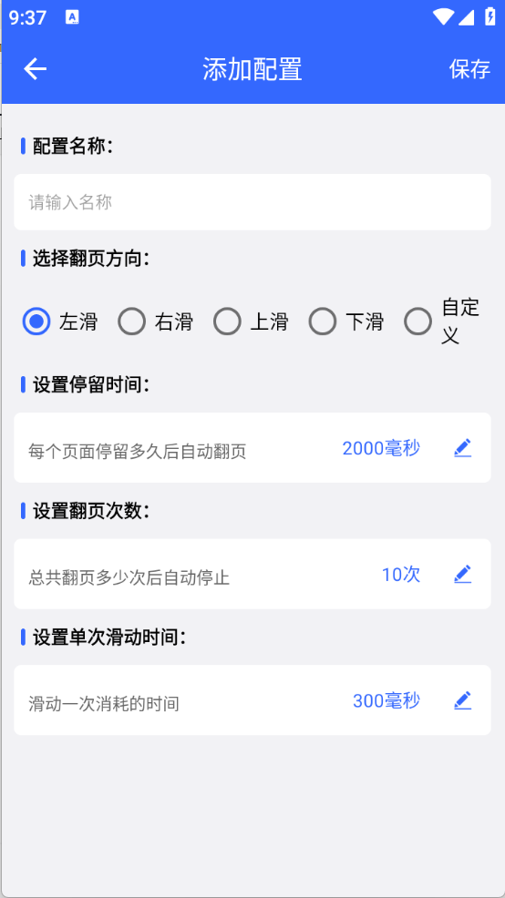 屏幕滑动助手软件是一款可以帮助用户滑动手机的软件,软件可以在用户进行各个操作时设置多个重复操作,不管是播放视频还是观看小说都可以使用其来进行重复动作,而且用户可以根据自己的习惯需求来进行参数的设置,包括滑动时长、频率等等,轻松解决用户的需求。