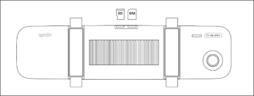 首先将后视镜包装盒内的SIM卡和TF卡分别插入后视镜对应的卡槽内,再将电源线插入后视镜的DC/IN接口。