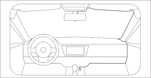 请使用包装盒内的撬棒将电源线埋入A柱胶条不同车辆点烟器口的位置不同,具体排线视情况而定,上图仅供参考。