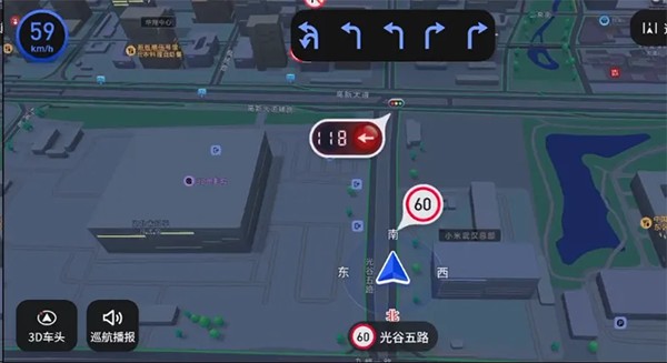 车速达到30KM/S自动进入巡航模式,巡航时可显示红绿灯倒计时以、车速、限速播报、路口指向等信息