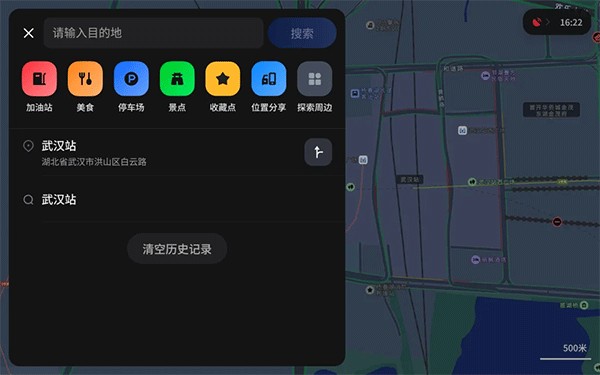 支持目的地搜索导航以及回家/公司快捷按钮导航,以及历史常用搜索目的地