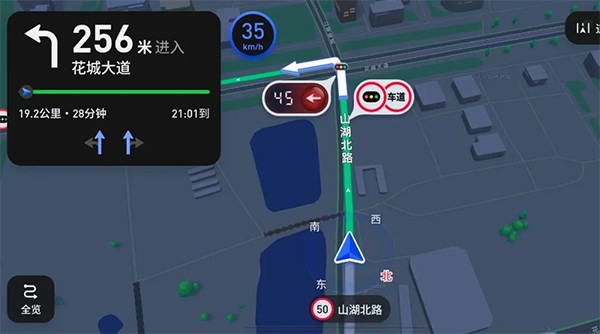 支持车道级导航,托其高精度地图数据,能实现从车道级到细致的路网地图的无缝切换。