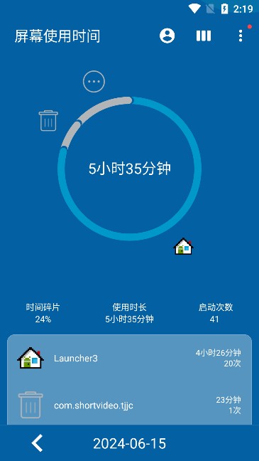 每一个app激活都会记录使用时间,能够帮助自己更好的去查看相关数据。