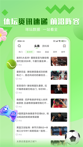 2、每一天都会更新大量的体育赛事新闻,保证你不会错过最新的体育比赛特点。