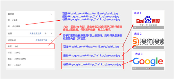 如上图所示,不管你数据源操作的是什么类型,最总目的都是去获取一个文本最后交由页面渲染器进行解析并将界面渲染出来。对了,数据源中的 #爬虫 实际上和爬虫并无多大的关系但也有一定的关系。 爬虫的配置图解: