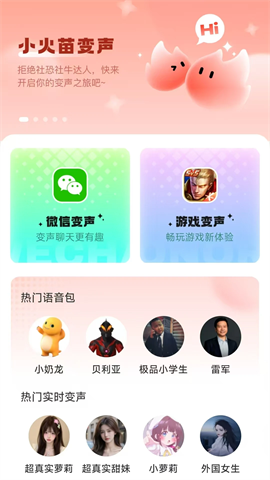 小火苗变声器免费版是一款非常有趣的智能变声器app,包含卡通人物、明星等各种类型,让你的每一次发声都充满了惊喜。采用了先进的AI智能算法,能够在改变用户音调的同时保留原声特色,没有任何机械感,呈现出最为自然的效果。紧跟潮流步伐,不断更新迭代语音素材库,融入当下的流行元素,为大家带来更多的创意语音包,轻松转换声线,感兴趣的小伙伴可不要错过呀。