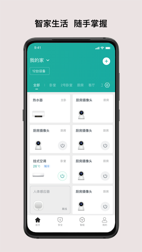 智能安防控制:支持用户对住宅中的:温度、湿度、PM2.5、光照强度、压力感应、人体感应、有毒气体、门窗安全、远程视频监控等进行查看。