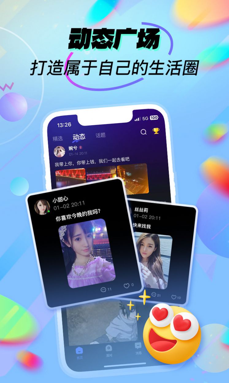 1. 与传统交友平台不同,软件以语音交流为主,打破文字交流的局限,增加真实互动。