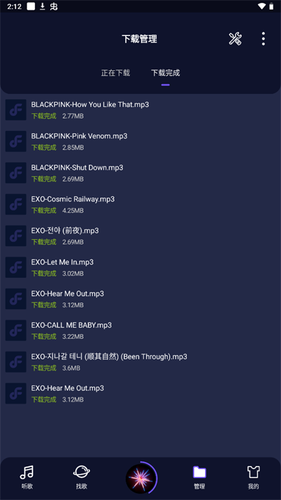 5.用户在管理中可以管理自己所下载的音乐。
