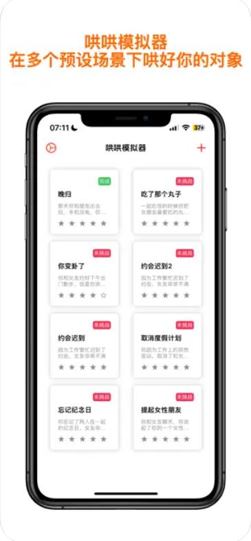 哄哄模拟器ai模拟是一款专为情商锻炼设计的模拟软件。用户可以在软件中设计真实情景,模拟哄生气的对象,从而提高自己的情商和人际交往能力。软件集合了情感识别、情景模拟等多种功能,为用户提供了一个全方位的情商锻炼平台。最终的目标是指导用户更好的和对象进行交流,促进彼此的感情和谐。