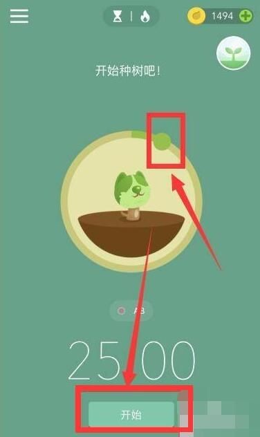 1、在forest专注森林中拖动时间按钮设置时间后,点击中间的小树;