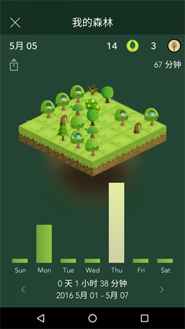 以森林记录每一天的专注情形,看看昨天您多麽努力,而今天是否有所进步。