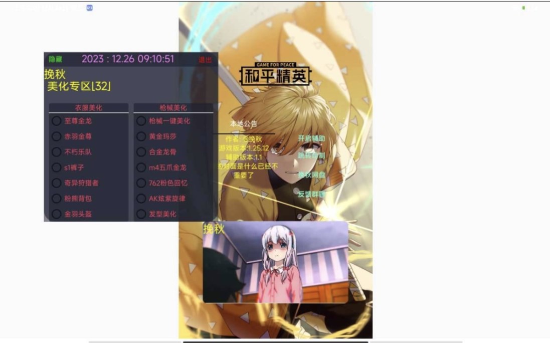 挽秋Pro框架是一款由博主打造的免费和平精英框架软件,支持32位和64位手机使用。该框架已经完善了众多功能,并增加了内存功能,需要root权限才能使用,也可以在虚拟机中使用。射击游戏更加方便操作,和平精英进行游戏对战,瞄准射击十分便利,有需要的用户快来下载吧!
