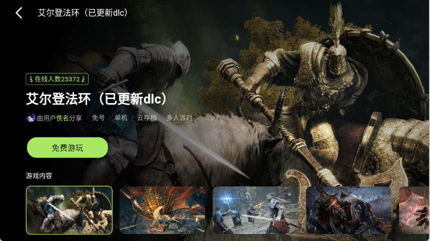 4、点开想玩的云游戏进入详情页,点击“免费游玩”即可。